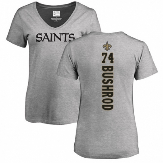 >NFL Women's Nike New Orleans Saints #74 Jermon Bushrod Ash Backer V-Neck T-Shirt