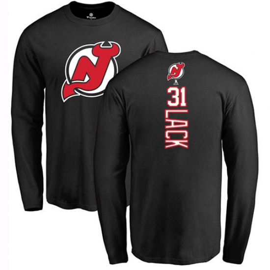 >NHL Adidas New Jersey Devils #31 Eddie Lack Black Backer Long Sleeve T-Shirt