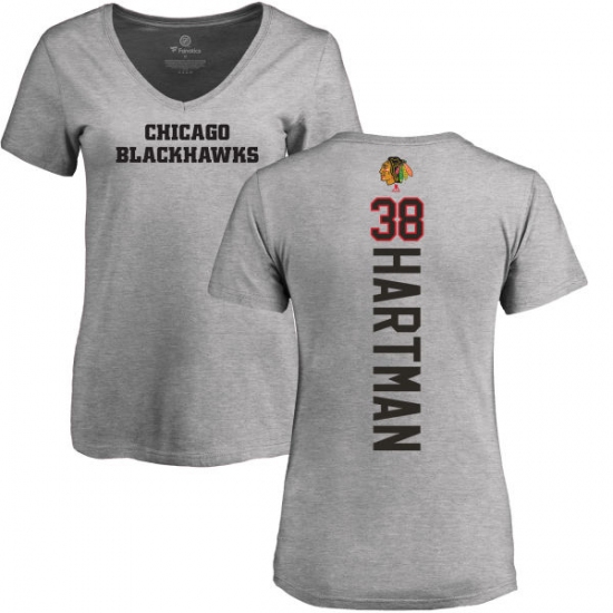 >NHL Women's Adidas Chicago Blackhawks #38 Ryan Hartman Ash Backer T-Shirt