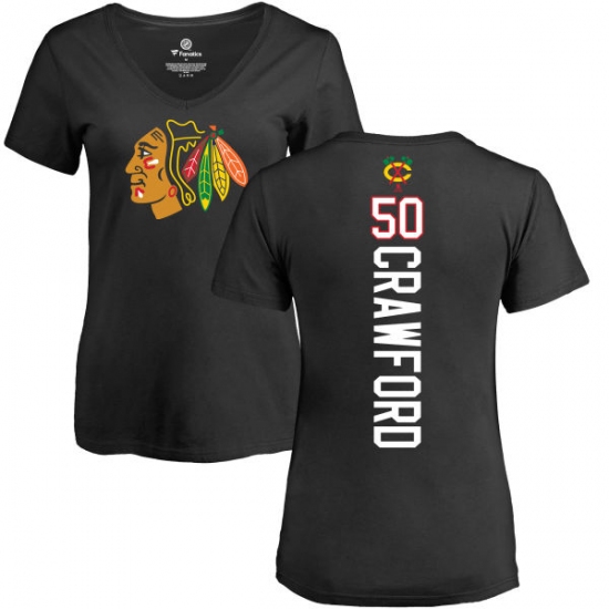 >NHL Women's Adidas Chicago Blackhawks #50 Corey Crawford Black Backer T-Shirt