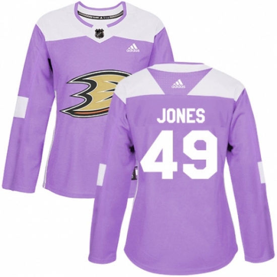 >Women's Adidas Anaheim Ducks #49 Max Jones Authentic Purple Fights Cancer Practice NHL Jersey