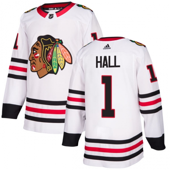Home>NHL>Chicago Blackhawks>Glenn Hall>Women's Adidas Chicago Blackhawks #1 Glenn Hall Authentic White Away NHL Jersey
