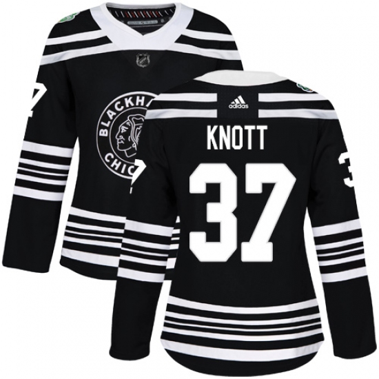 Women's Adidas Chicago Blackhawks #37 Graham Knott Authentic Black 2019 Winter Classic NHL Jersey
