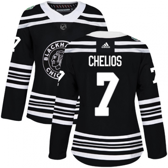 Women's Adidas Chicago Blackhawks #7 Chris Chelios Authentic Black 2019 Winter Classic NHL Jersey