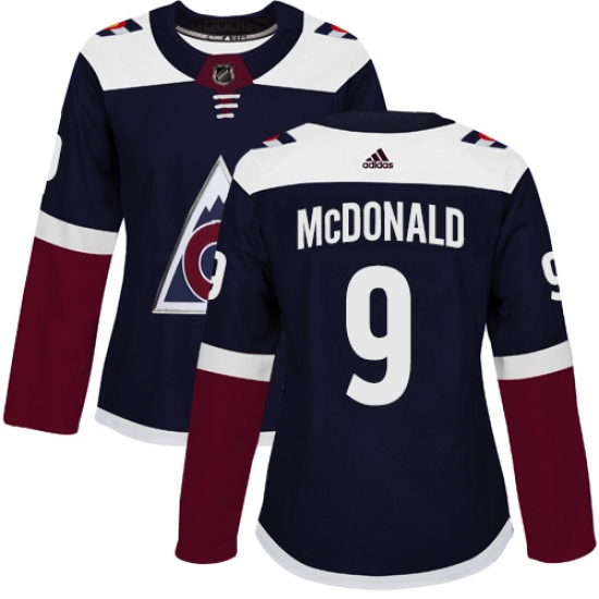 >Women's Adidas Colorado Avalanche #9 Lanny McDonald Authentic Navy Blue Alternate NHL Jersey