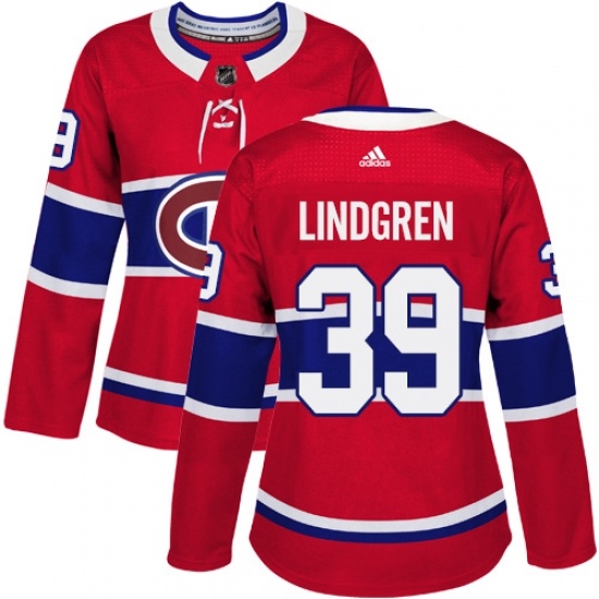 Home>NHL>Montreal Canadiens>Charlie Lindgren>Women's Adidas Montreal Canadiens #39 Charlie Lindgren Authentic Red Home NHL Jersey