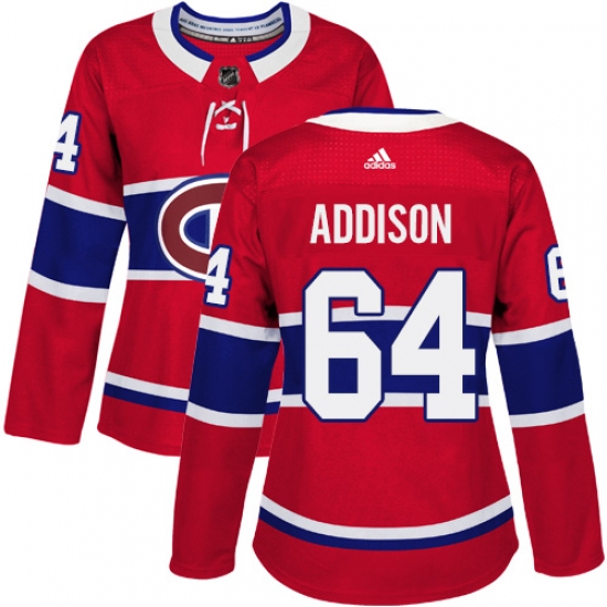 Home>NHL>Montreal Canadiens>Jeremiah Addison>Women's Adidas Montreal Canadiens #64 Jeremiah Addison Authentic Red Home NHL Jersey