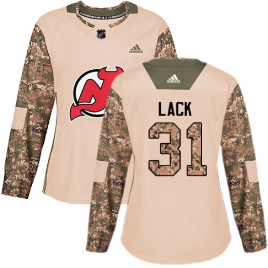 >Women's Adidas New Jersey Devils #31 Eddie Lack Authentic Camo Veterans Day Practice NHL Jersey