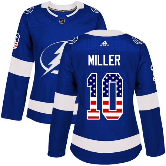 >Women's Adidas Tampa Bay Lightning #10 J.T. Miller Authentic Blue USA Flag Fashion NHL Jersey