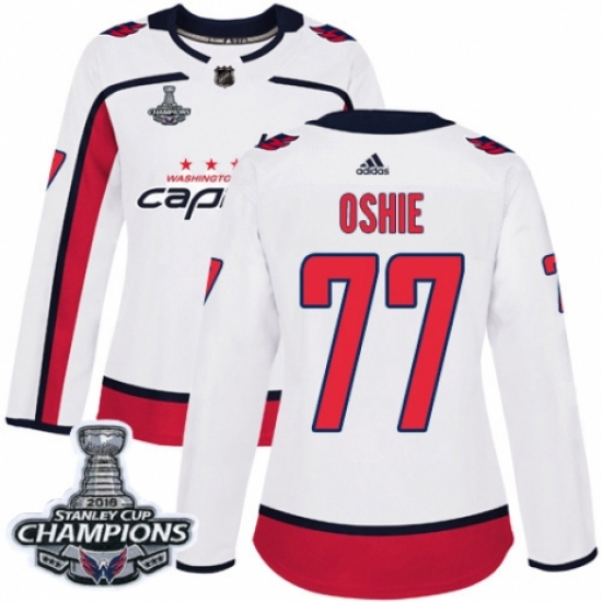 Women's Adidas Washington Capitals #77 T.J. Oshie Authentic White Away 2018 Stanley Cup Final Champions NHL Jersey