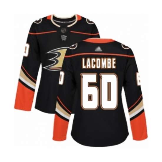 >Women's Anaheim Ducks #60 Jackson Lacombe Authentic Black Home Hockey Jersey