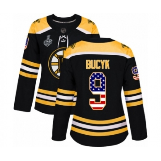 Women's Boston Bruins #9 Johnny Bucyk Authentic Black USA Flag Fashion 2019 Stanley Cup Final Bound Hockey Jersey