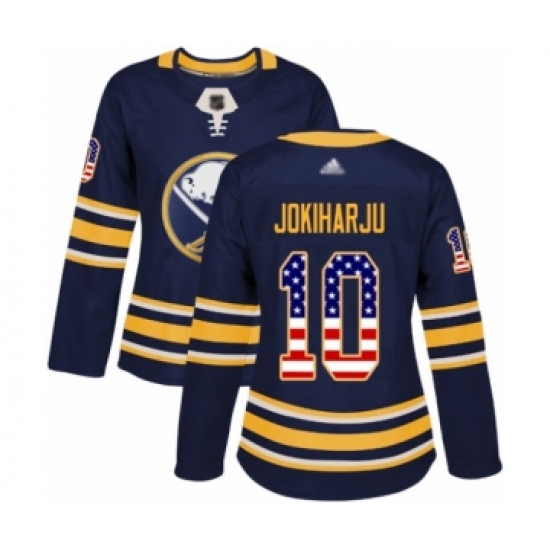 >Women's Buffalo Sabres #10 Henri Jokiharju Authentic Navy Blue USA Flag Fashion Hockey Jersey