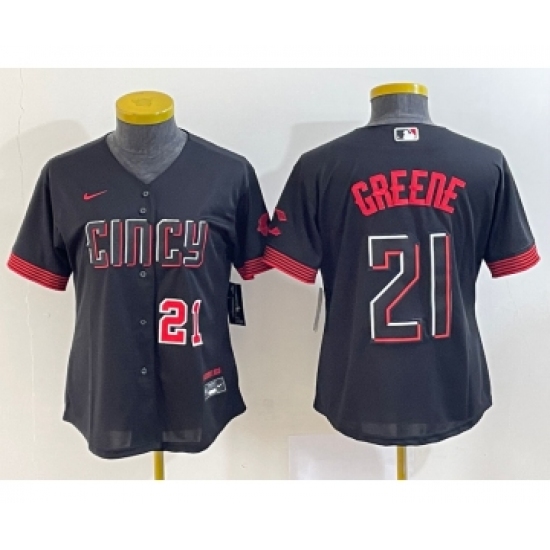 Women's Cincinnati Reds #21 Hunter Greene Black 2023 City Connect Cool Base Stitched Jersey