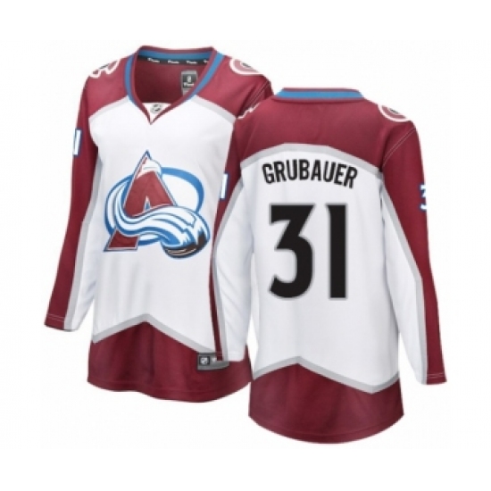 Women's Colorado Avalanche #31 Philipp Grubauer Authentic White Away Fanatics Branded Breakaway NHL Jersey