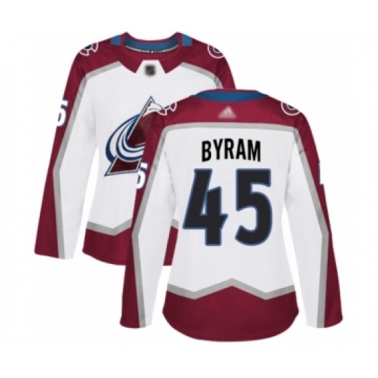 >Women's Colorado Avalanche #45 Bowen Byram Authentic White Away Hockey Jersey