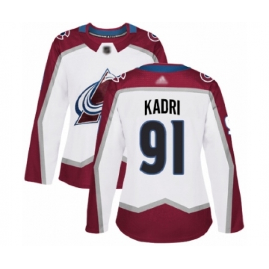 Women's Colorado Avalanche #91 Nazem Kadri Authentic White Away Hockey Jersey