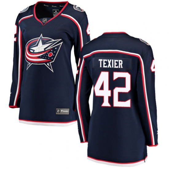 Home>NHL>Columbus Blue Jackets>Alexandre Texier>Women's Columbus Blue Jackets #42 Alexandre Texier Fanatics Branded Navy Blue Home Breakaway NHL Jersey