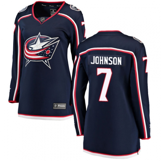 Home>NHL>Columbus Blue Jackets>Jack Johnson>Women's Columbus Blue Jackets #7 Jack Johnson Fanatics Branded Navy Blue Home Breakaway NHL Jersey