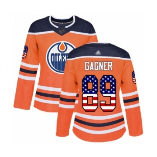 >Women's Edmonton Oilers #89 Sam Gagner Authentic Orange USA Flag Fashion Hockey Jersey