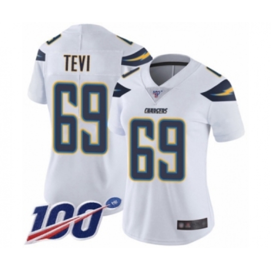 Women's Los Angeles Chargers #69 Sam Tevi White Vapor Untouchable Limited Player 100th Season Football Jersey