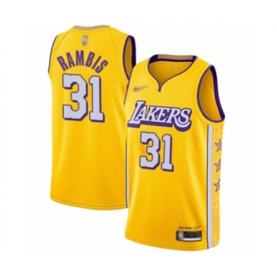 >Women's Los Angeles Lakers #31 Kurt Rambis Swingman Gold Basketball Jersey - 2019 20 City Edition