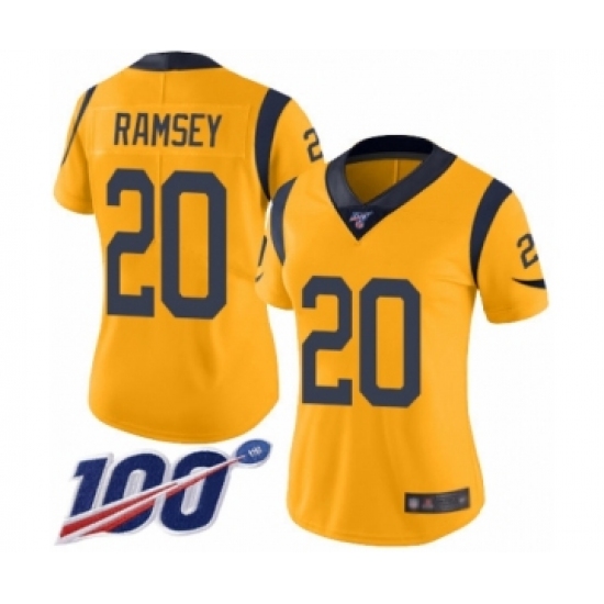 >Women's Los Angeles Rams #20 Jalen Ramsey Limited Gold Rush Vapor Untouchable 100th Season Football Jersey