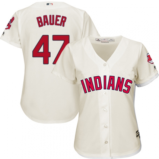Home>MLB>Cleveland Indians>Trevor Bauer>Women's Majestic Cleveland Indians #47 Trevor Bauer Replica Cream Alternate 2 Cool Base MLB Jersey