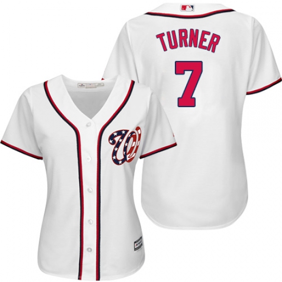 Home>MLB>Washington Nationals>Trea Turner>Women's Majestic Washington Nationals #7 Trea Turner Authentic White Home Cool Base MLB Jersey