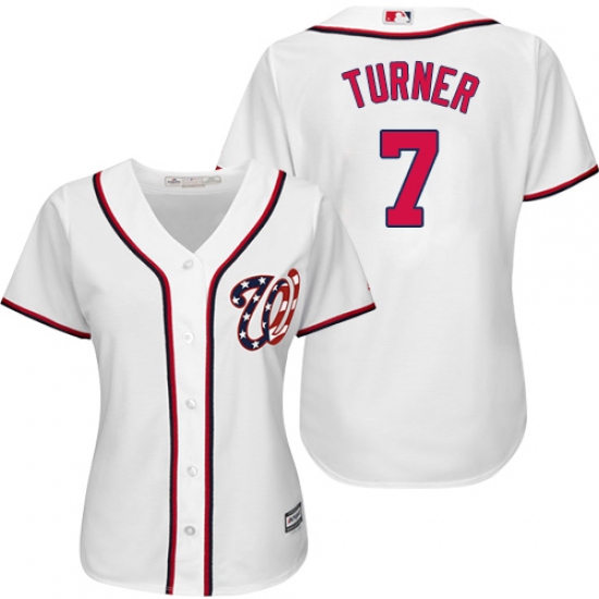Home>MLB>Washington Nationals>Trea Turner>Women's Majestic Washington Nationals #7 Trea Turner Replica White Home Cool Base MLB Jersey