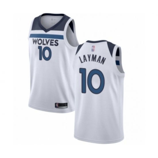 >Women's Minnesota Timberwolves #10 Jake Layman Swingman White Basketball Jersey - Association Edition