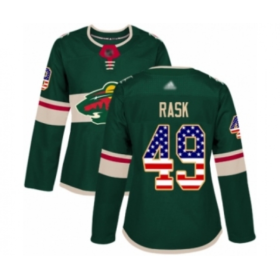 Women's Minnesota Wild #49 Victor Rask Authentic Green USA Flag Fashion Hockey Jersey