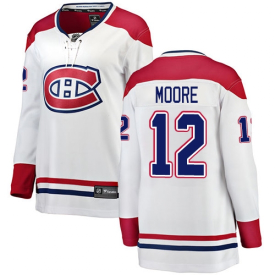 Women's Montreal Canadiens #12 Dickie Moore Authentic White Away Fanatics Branded Breakaway NHL Jersey