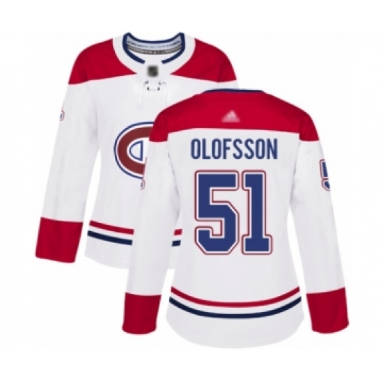 Women's Montreal Canadiens #51 Gustav Olofsson Authentic White Away Hockey Jersey
