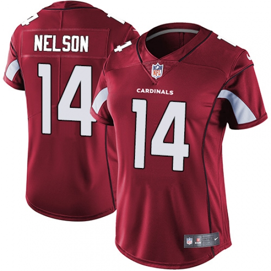 Home>NFL>Arizona Cardinals>J.J. Nelson>Women's Nike Arizona Cardinals #14 J.J. Nelson Red Team Color Vapor Untouchable Limited Player NFL Jersey