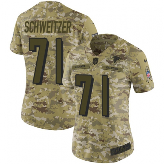 >Women's Nike Atlanta Falcons #71 Wes Schweitzer Limited Camo 2018 Salute to Service NFL Jersey