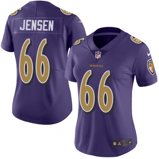 Home>NFL>Baltimore Ravens>Ryan Jensen>Women's Nike Baltimore Ravens #66 Ryan Jensen Limited Purple Rush Vapor Untouchable NFL Jersey