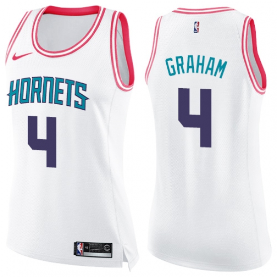 >Women's Nike Charlotte Hornets #4 Devonte Graham Swingman White Pink Fashion NBA Jersey