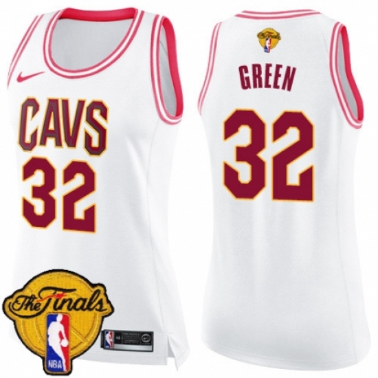 Women's Nike Cleveland Cavaliers #32 Jeff Green Swingman White/Pink Fashion 2018 NBA Finals Bound NBA Jersey