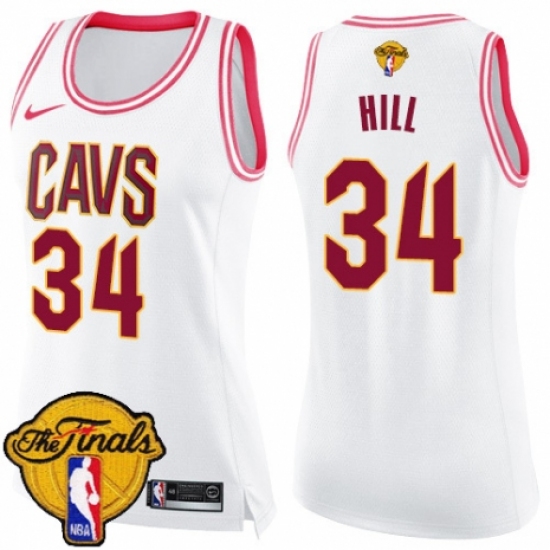 Women's Nike Cleveland Cavaliers #34 Tyrone Hill Swingman White/Pink Fashion 2018 NBA Finals Bound NBA Jersey