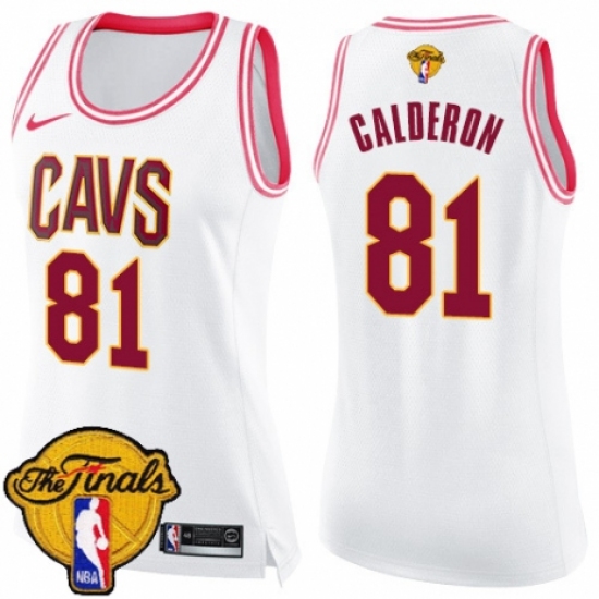 >Women's Nike Cleveland Cavaliers #81 Jose Calderon Swingman White/Pink Fashion 2018 NBA Finals Bound NBA Jersey