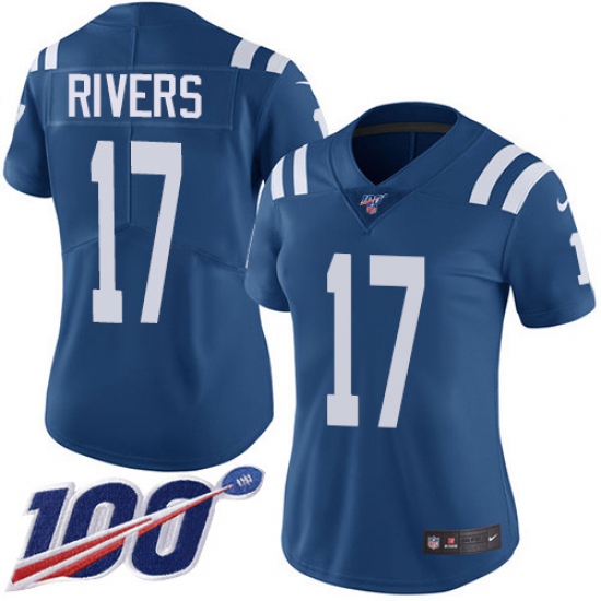 Women's Nike Indianapolis Colts #17 Philip Rivers Royal Blue Team Color Stitched NFL 100th Season Vapor Untouchable Limited Jersey