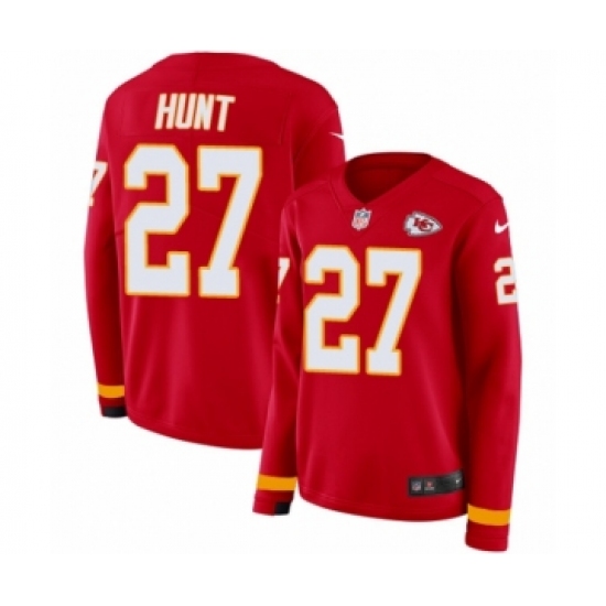 Women's Nike Kansas City Chiefs #27 Kareem Hunt Limited Red Therma Long Sleeve NFL Jersey