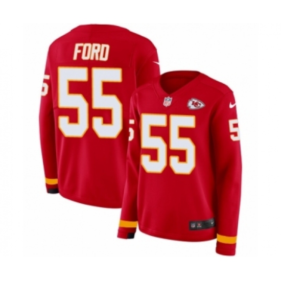 >Women's Nike Kansas City Chiefs #55 Dee Ford Limited Red Therma Long Sleeve NFL Jersey