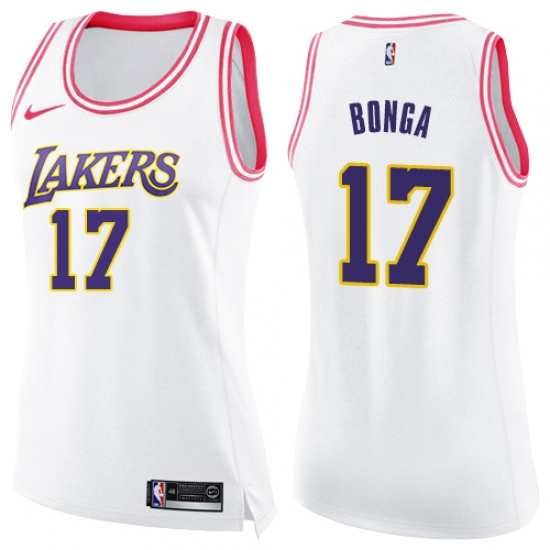 >Women's Nike Los Angeles Lakers #17 Isaac Bonga Swingman White Pink Fashion NBA Jersey
