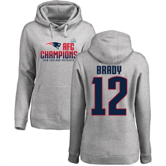 >Women's Nike New England Patriots #12 Tom Brady Heather Gray 2017 AFC Champions Pullover Hoodie