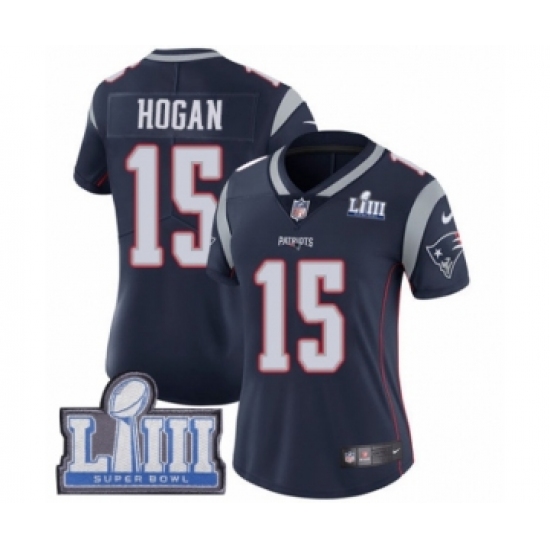 >Women's Nike New England Patriots #15 Chris Hogan Navy Blue Team Color Vapor Untouchable Limited Player Super Bowl LIII Bound NFL Jersey