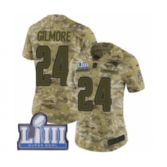 Women's Nike New England Patriots #24 Stephon Gilmore Limited Camo 2018 Salute to Service Super Bowl LIII Bound NFL Jersey