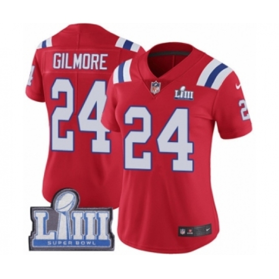 >Women's Nike New England Patriots #24 Stephon Gilmore Red Alternate Vapor Untouchable Limited Player Super Bowl LIII Bound NFL Jersey
