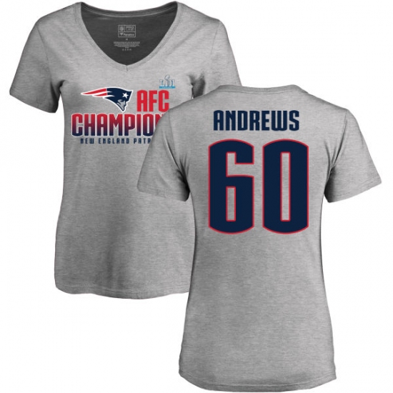 >Women's Nike New England Patriots #60 David Andrews Heather Gray 2017 AFC Champions V-Neck T-Shirt